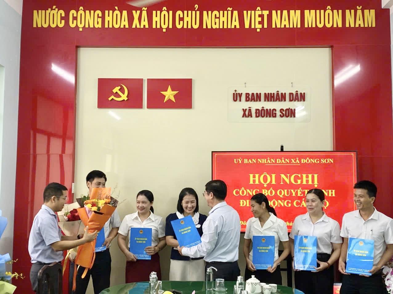 UBND XÃ ĐÔNG SƠN TỔ CHỨC HỘI NGHỊ CÔNG BỐ QUYẾT ĐỊNH ĐIỀU ĐỘNG CÔNG TÁC ĐỐI VỚI 06 CÔNG CHỨC