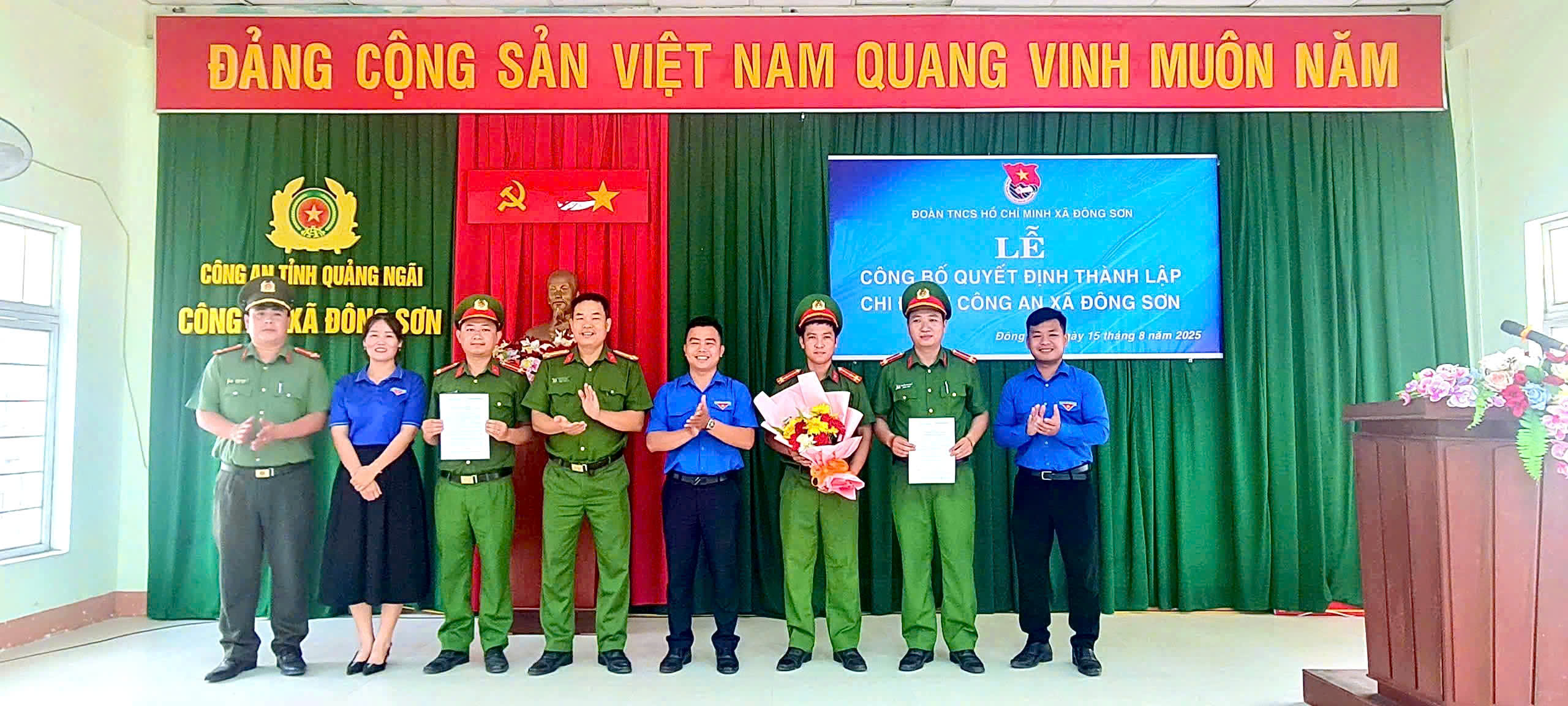 Sáng ngày 15/8/2025, Ban Chấp hành Đoàn xã đã tổ chức Lễ Công bố Quyết định thành lập Chi đoàn Công an xã Đông Sơn. Đây là sự kiện quan trọng, đánh dấu bước phát triển của công tác Đoàn và phong trào thanh niên tại địa phương sau sắp xếp đơn vị hành chính.
